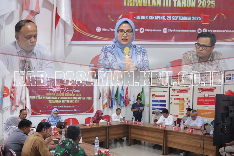 kab-pasaman.kpu.go.id– Komisi Pemilihan Umum (KPU) Kabupaten Pasaman melaksanakan Rapat Koordinasi Tindak Lanjut Turunan Data Pemutakhiran Data Pemilih Berkelanjutan (PDPB) Triwulan III Tahun 2025 bertempat di Media Center KPU Kabupaten Pasaman, Senin (29/9).