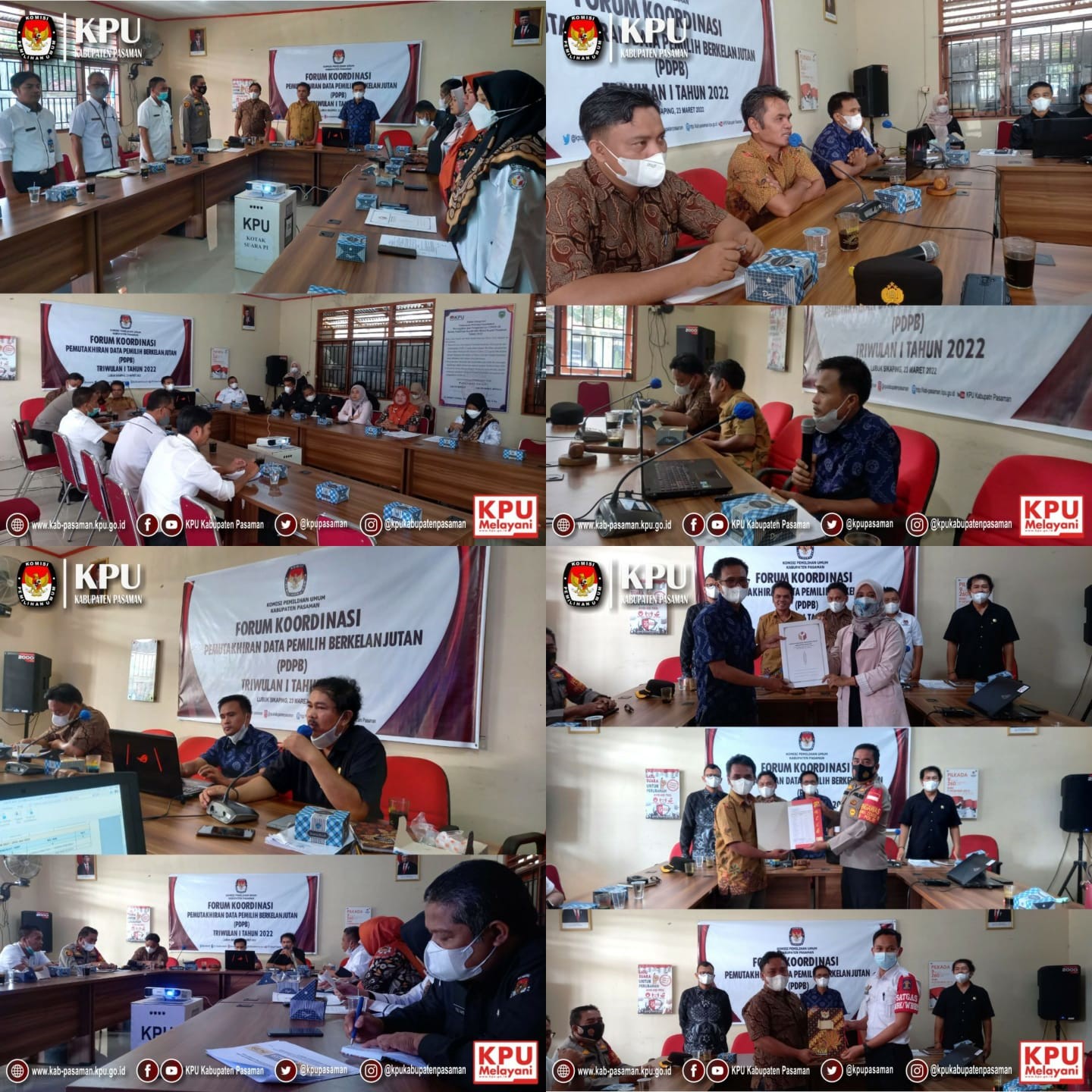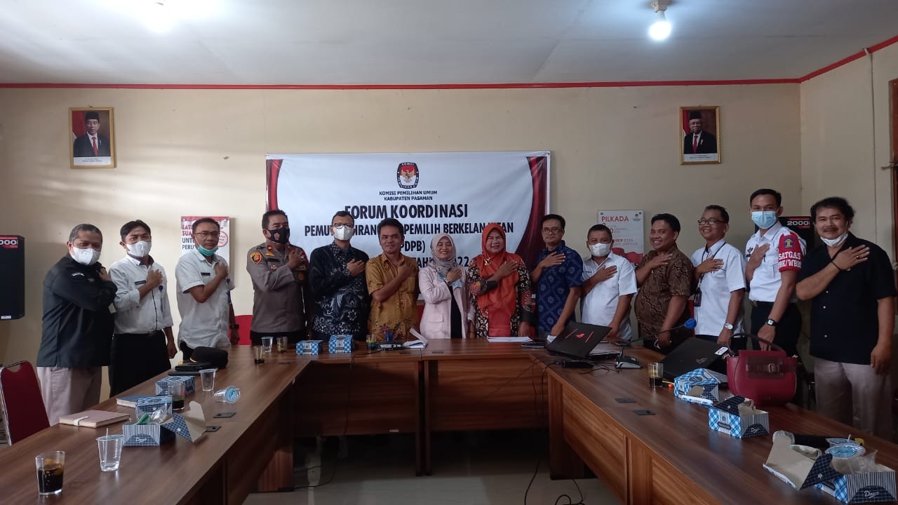 Forum koordinasi ini diselenggarakan untuk melibatkan stakeholder terkait agar bersinergi dalam rangka menyukseskan program PDPB, yaitu upaya KPU untuk menyediakan data dan informasi pemilih secara komprehensif, akurat, dan mutakhir pada Pemilu dan Pemilihan Serentak 2024 mendatang. Kegiatan ini dihadiri oleh Polres Pasaman, Bawaslu Kabupaten Pasaman, Rutan Kelas IIb Lubuk Sikaping, Disdukcapil Kabupaten Pasaman, DPM Kabupaten Pasaman dan Badan Kesbangpol Kabupaten Pasaman