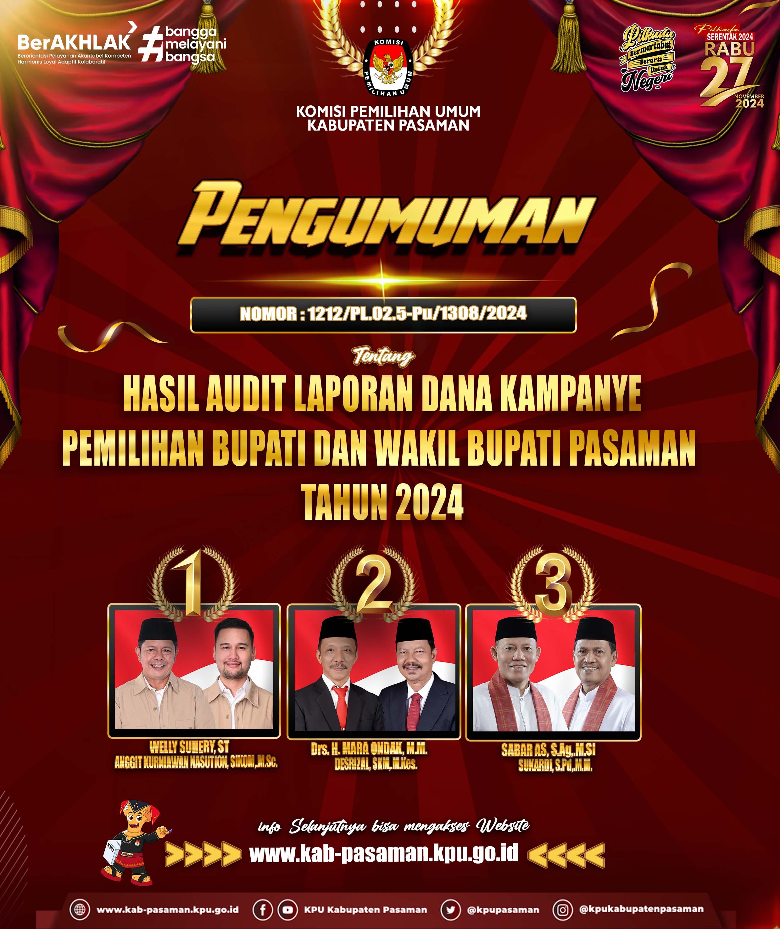 HASIL AUDIT LAPORAN DANA KAMPANYE PEMILIHAN BUPATI DAN WAKIL BUPATI PASAMAN TAHUN 2024