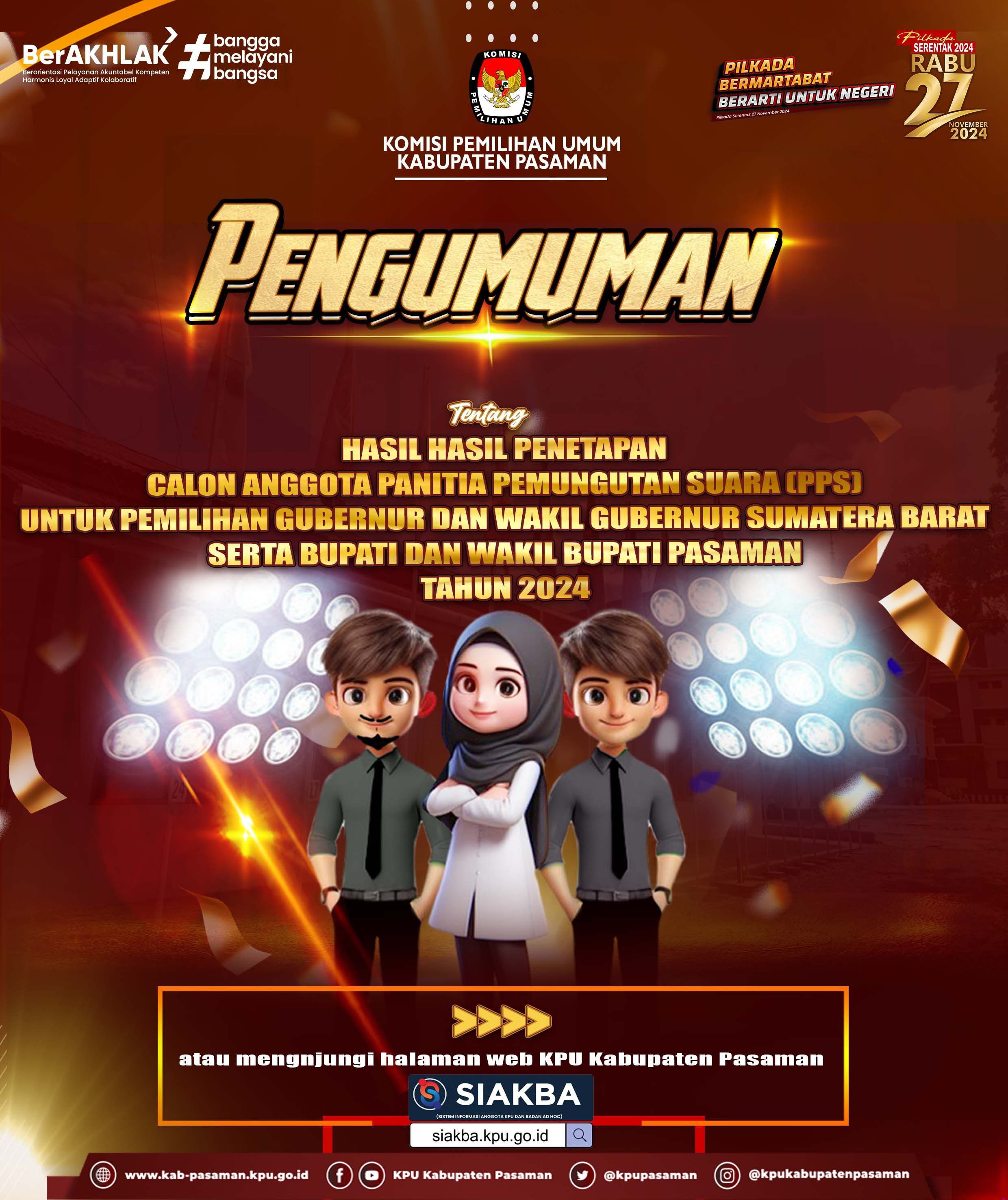 HASIL PENETAPAN SELEKSI CALON ANGGOTA PPS UNTUK PEMILIHAN GUBERNUR DAN WAKIL GUBERNUR SUMATERA BARAT SERTA BUPATI DAN WAKIL BUPATI PASAMAN TAHUN 2024