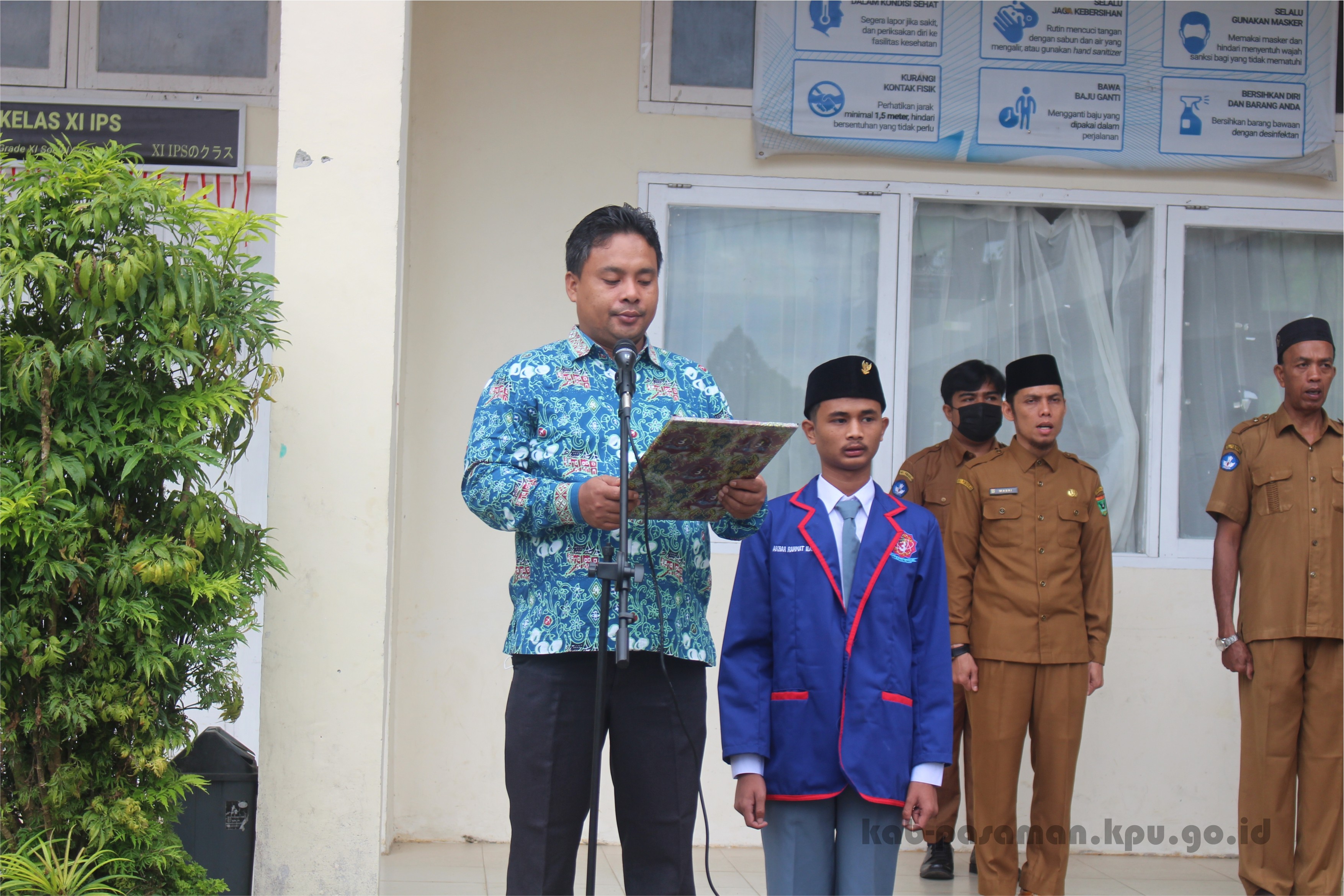 Lubuk Sikaping, www.kab-pasaman.kpu.go.id – Anggota KPU Kabupaten Pasaman, Eria Candra menghadiri kegiatan Upacara Bendera di SMA Negeri 3 Sumatera Barat dengan bertindak sebagai Pembina Upacara, Senin (05/09).