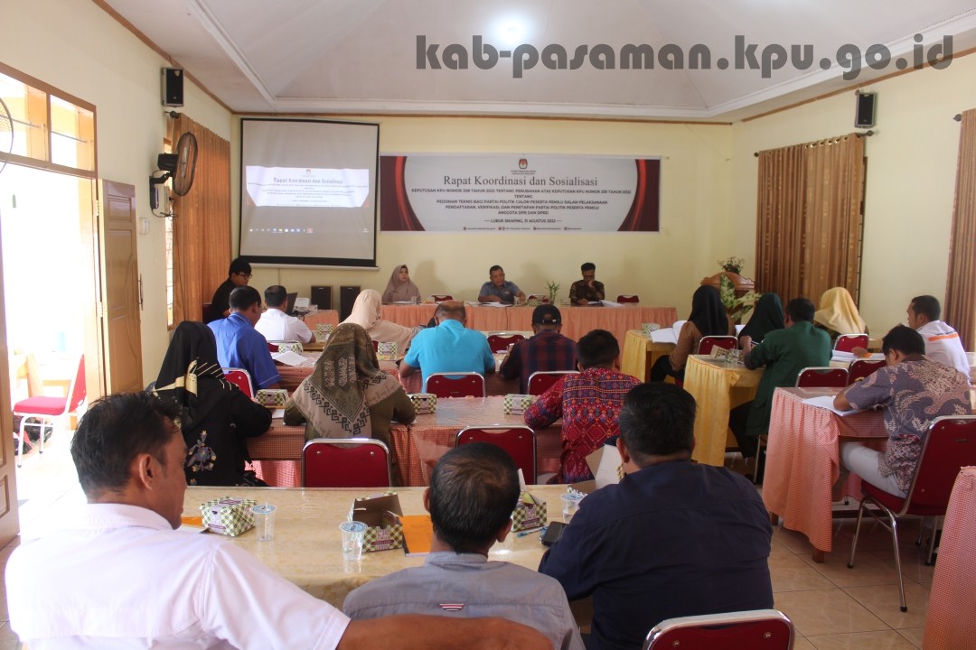 KPU PASAMAN GELAR RAKOR & SOSIALISASI KEPUTUSAN KPU NOMOR 308 TAHUN 2022