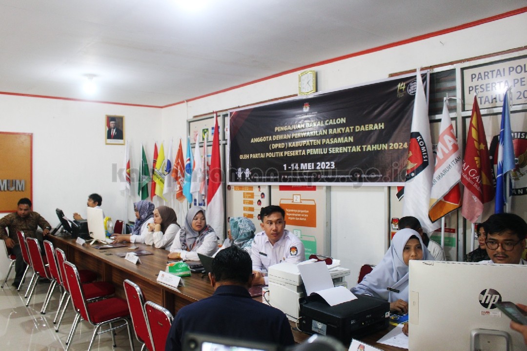 Partai Nasdem dan PKS masing-masing menyerahkan dokumen formulir MODEL B-PENGAJUAN-PARPOL dan formulir MODEL B-DAFTAR.BAKAL.CALON ke KPU Kabupaten Pasaman dengan dilampiri dengan Surat Persetujuan dari masing-masing DPP partai politik.