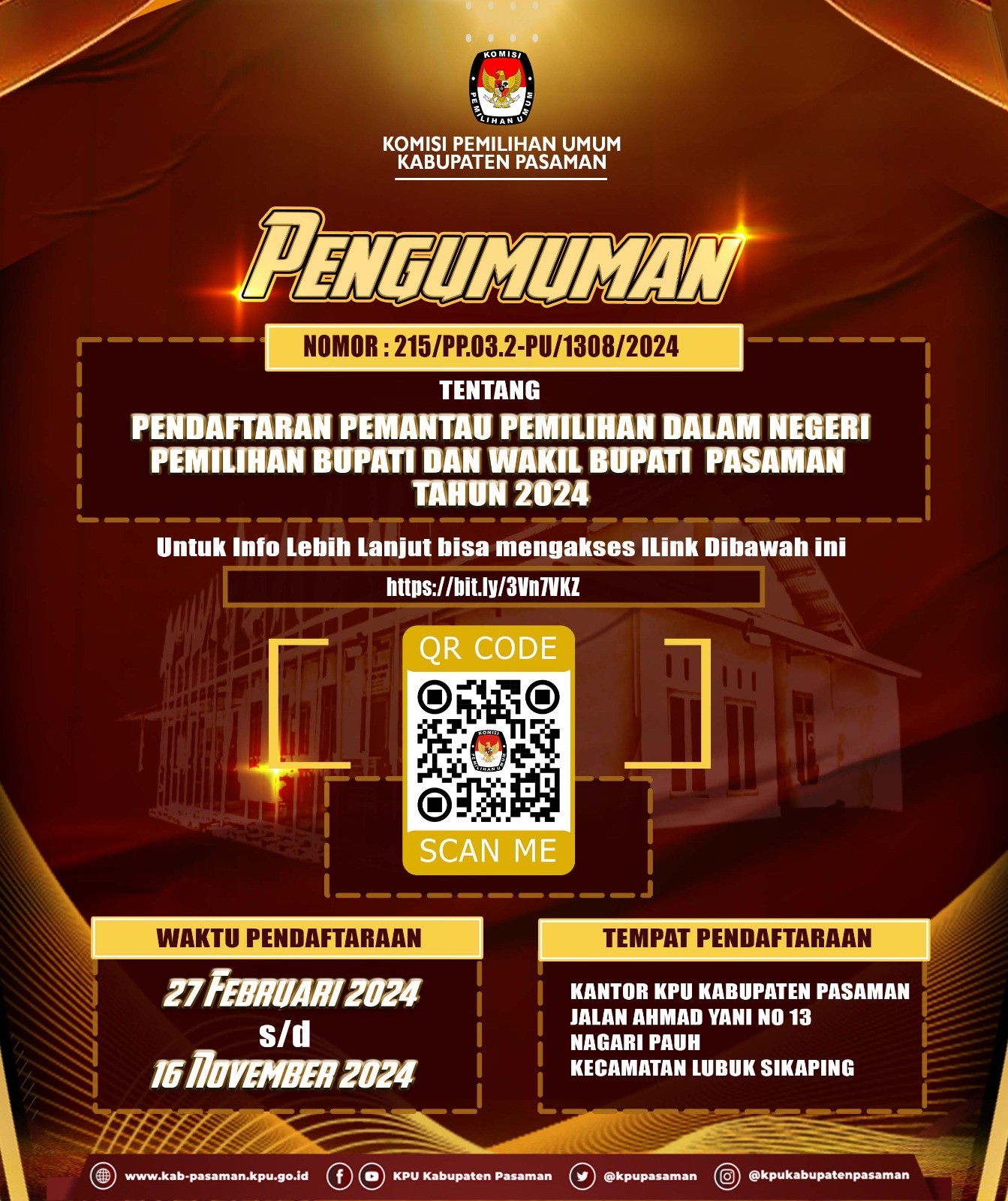 PENDAFTARAN PEMANTAU PEMILIHAN DALAM NEGERI PEMILIHAN BUPATI DAN WAKIL BUPATI PASAMAN TAHUN 2024