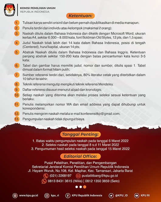 Pengumuman Call For Paper Konfrensi Nasional Tata Kelola Pemilu Tahun 2022