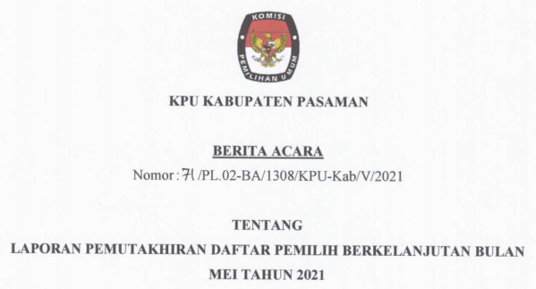 - (Download) Berita Acara Laporan Pemutakhiran Data Pemilih Berkelanjutan Bulan Mei Tahun 2021