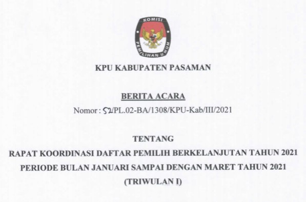 - (Download) Berita Acara Rakor Data Pemilih Berkelanjutan Triwulan I Januari s.d. Maret 2021.