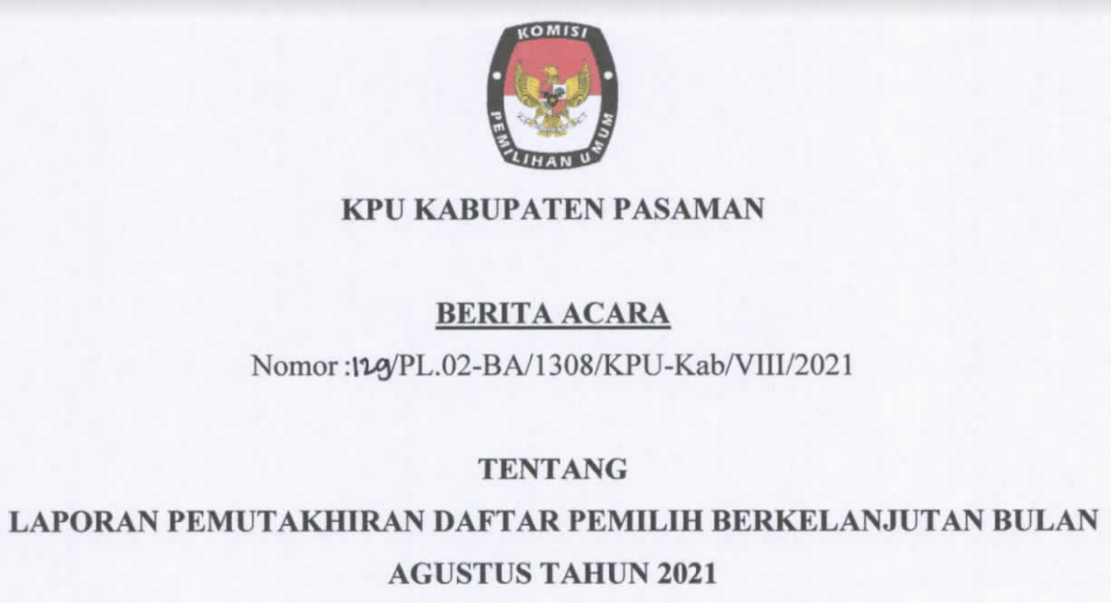 - (Download) Berita Acara Laporan Pemutakhiran Data Pemilih Berkelanjutan (PDPB) Bulan Agustus 2021
