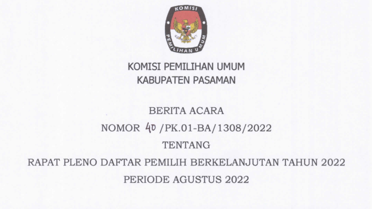- (Download) Berita Acara Rapat Pleno Daftar Pemilih Berkelanjutan Tahun 2022 Periode Agustus 2022 & Daftar Pemilih Hasil PDPB (Model A-DPB)