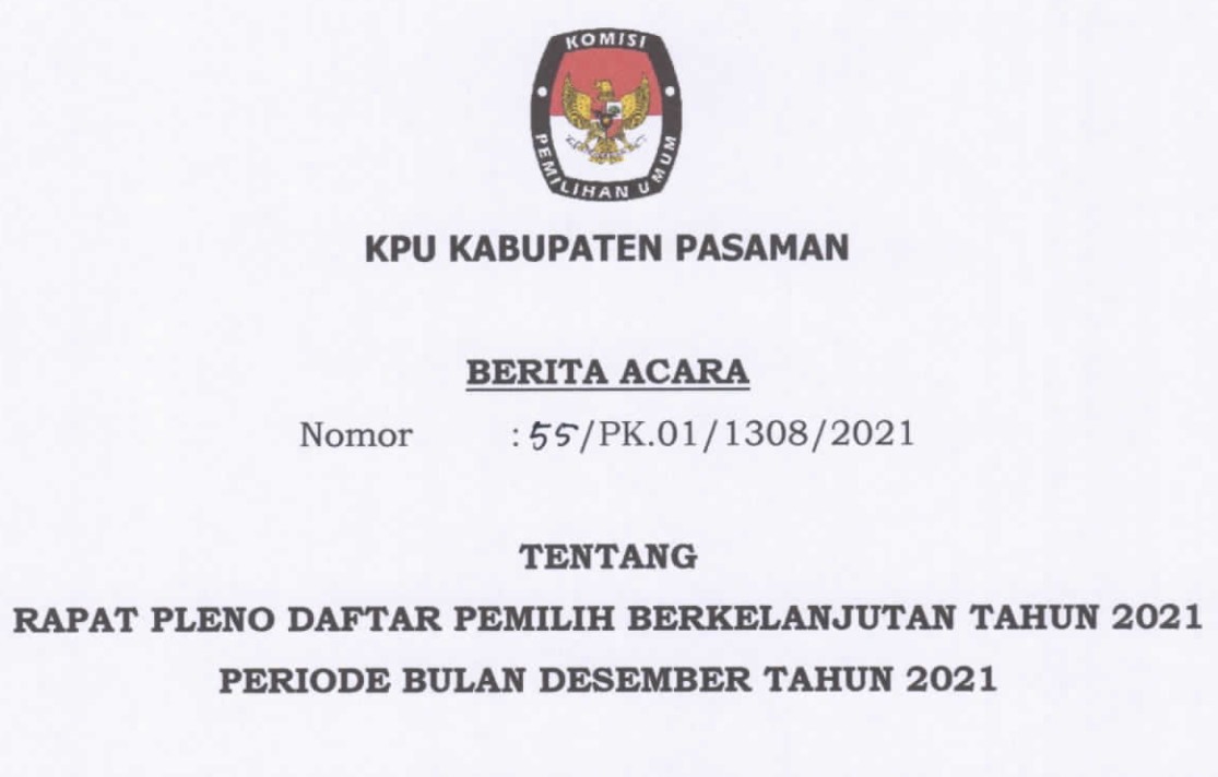- (Download) Berita Acara Laporan Pemutakhiran Data Pemilih Berkelanjutan (PDPB) Bulan Desember 2021