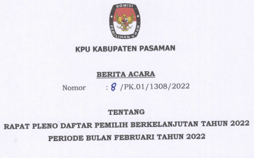 - (Download) Berita Acara Laporan Pemutakhiran Data Pemilih Berkelanjutan (PDPB) Bulan Februari 2022 & Daftar Pemilih Hasil PDPB (Model A-DPB)