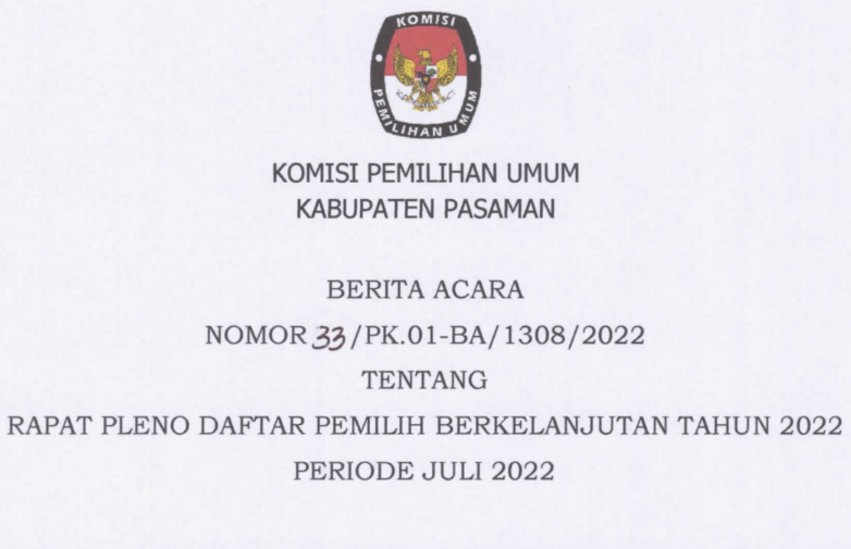 - (Download) Berita Acara Rapat Pleno Daftar Pemilih Berkelanjutan Tahun 2022 Periode Juni 2022 & Daftar Pemilih Hasil PDPB (Model A-DPB)