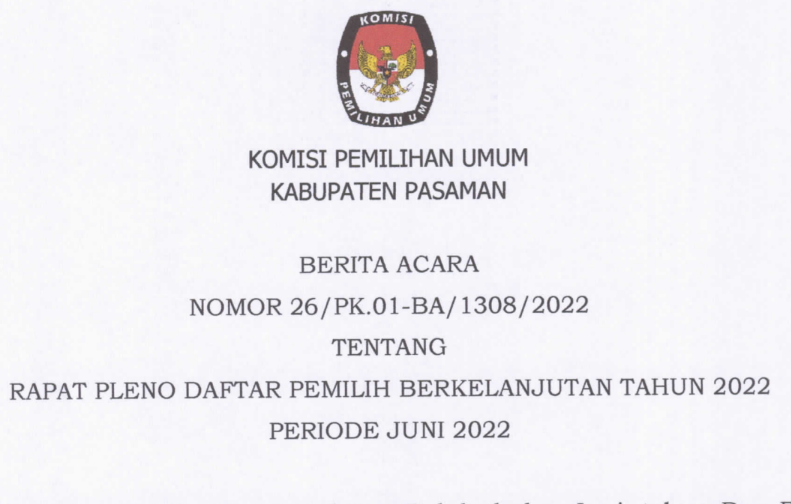 PENGUMUMAN HASIL PEMUTAKHIRAN DATA PEMILIH BERKELANJUTAN BULAN JUNI TAHUN 2022