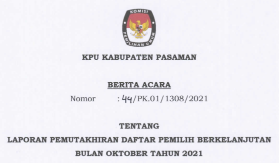 - (Download) Berita Acara Laporan Pemutakhiran Data Pemilih Berkelanjutan (PDPB) Bulan Oktober 2021