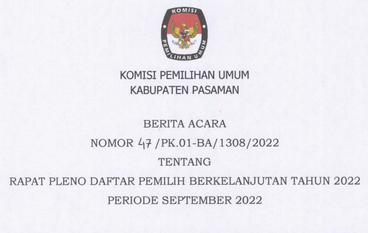 - (Download) Berita Acara Rapat Pleno Daftar Pemilih Berkelanjutan Tahun 2022 Periode September 2022 & Daftar Pemilih Hasil PDPB (Model A-DPB)