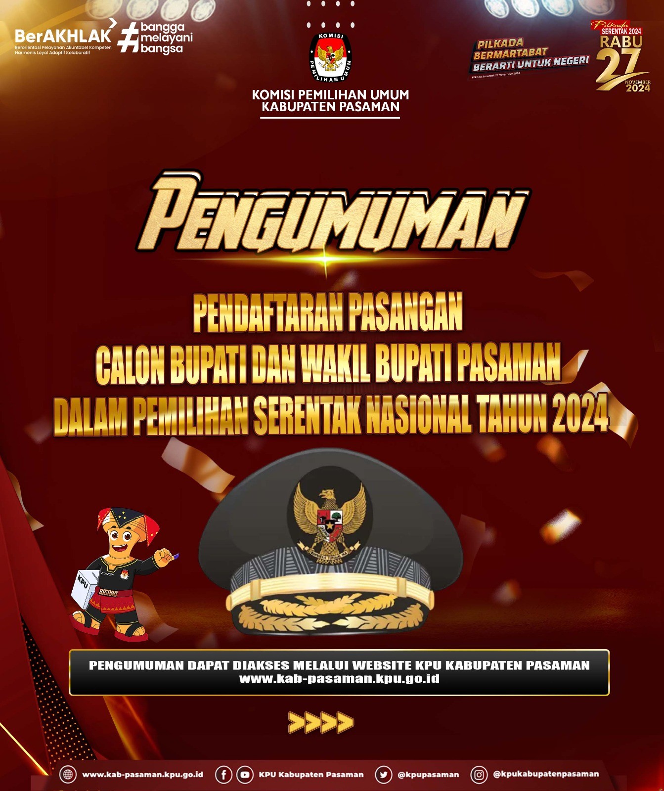 PENGUMUMAN PENDAFTARAN PASANGAN CALON BUPATI DAN WAKIL BUPATI PASAMAN TAHUN 2024