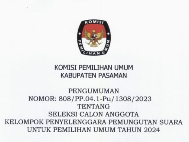 PENGUMUMAN SELEKSI CALON ANGGOTA KELOMPOK PENYELENGGARA PEMUNGUTAN SUARA (KPPS) UNTUK PEMILU 2024