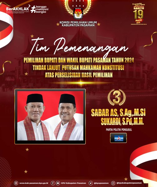 PENGUMUMAN TIM PEMENANGAN PASANGAN CALON BUPATI DAN WAKIL BUPATI PASAMAN TAHUN 2024 TINDAK LANJUT PUTUSAN MAHKAMAH KONSTITUSI , SABAR AS, S.AG.,M.SI DAN SUKARDI, S.PD.,M.M