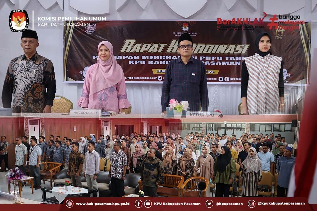 Ketua KPU Kabupaten Pasaman, Taufiq dalam sambutannya membuka secara resmi kegiatan rapat koordinasi (rakor), menyampaikan rapat bertujuan untuk memetakan sejak awal terkait PHPU.