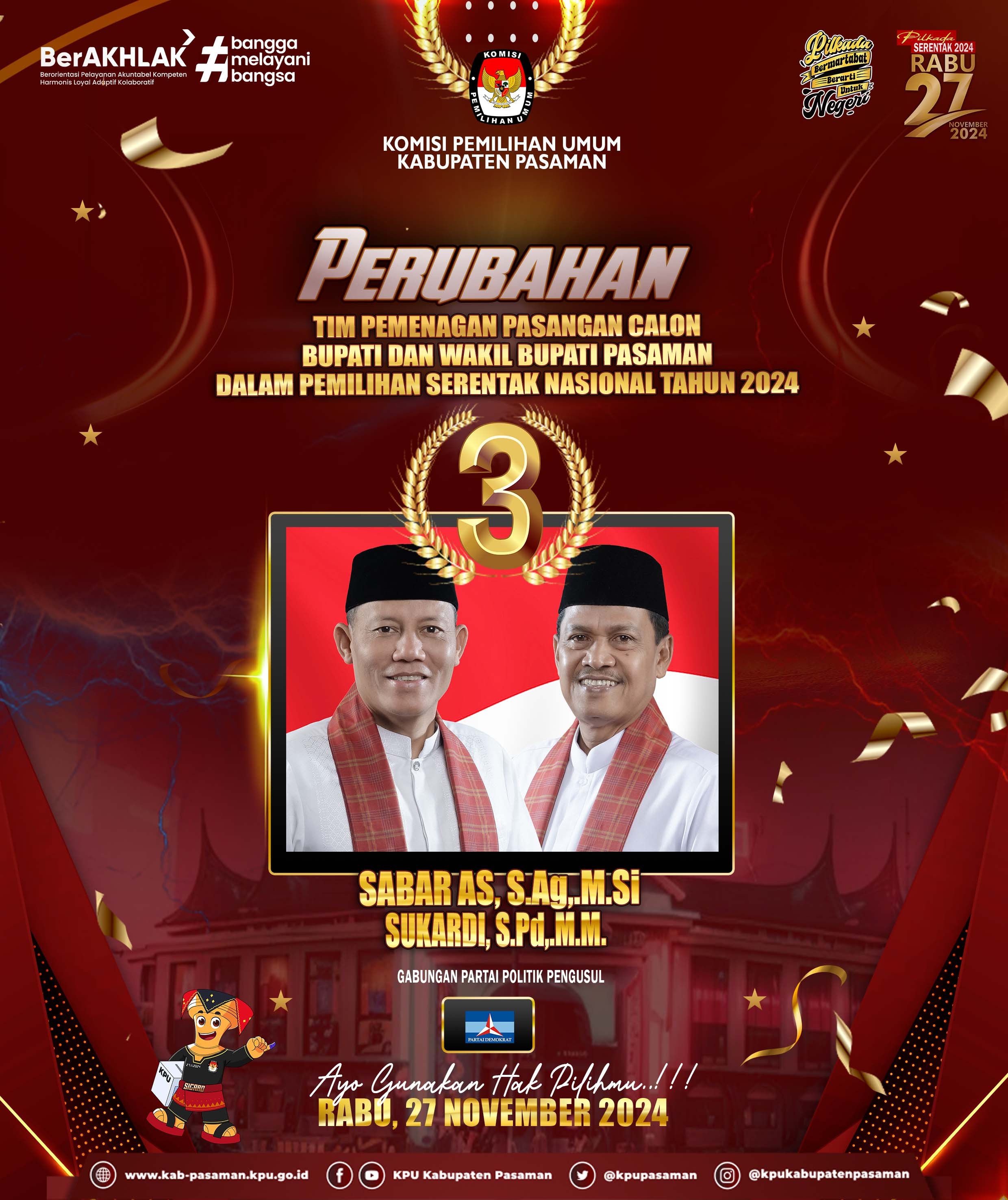 #TemanPemilih, Berikut Ini disampaikan Perubahan Tim Pemenangan Pasangan Calon Bupati dan Wakil Bupati Pasaman Tahun 2024, SABAR AS, S.Ag.,M.Si dan SUKARDI, S.Pd.,M.M tingkat Kabupaten