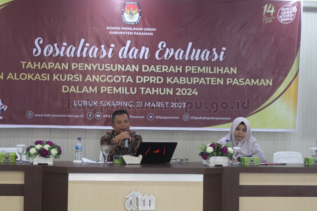 SOSIALISASI DAN EVALUASI TAHAPAN PENYUSUNAN DAPIL DAN ALOKASI KURSI ANGGOTA DPRD KAB. PASAMAN PEMILU 2024