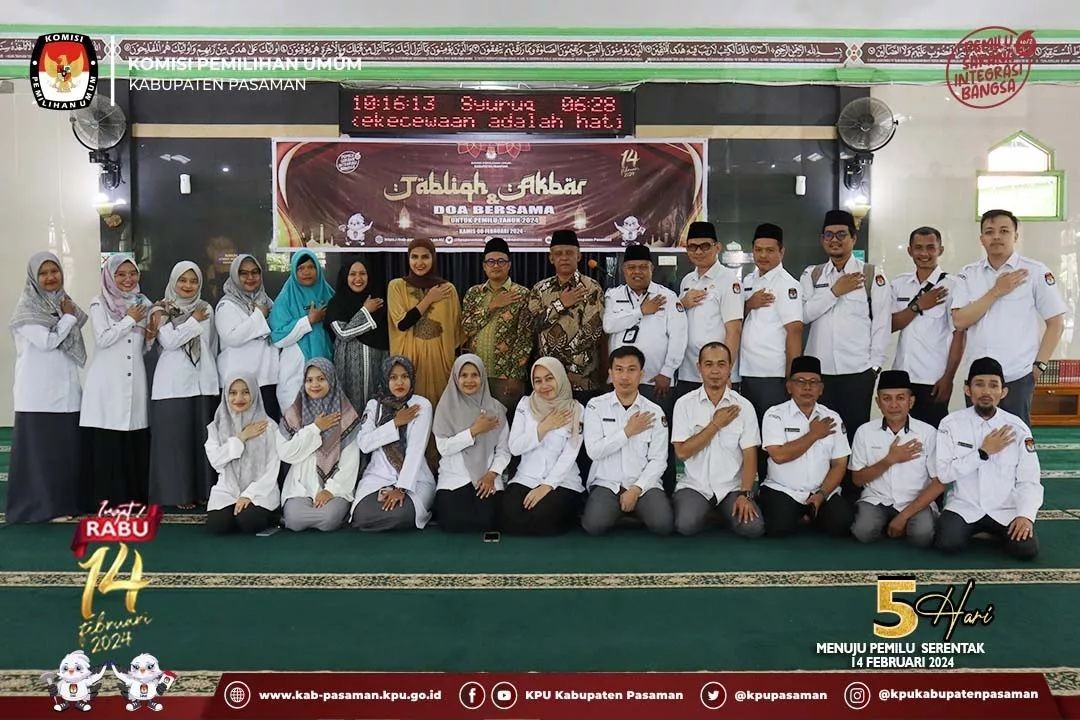 Lubuk Sikaping, www.kab-pasaman.kpu.go.id - KPU Kabupaten Pasaman menggelar Tabligh Akbar dan Doa Bersama untuk Pemilihan Umum Tahun 2024 bertempat di Masjid Agung Al-Muttaqin Lubuk Sikaping, Kamis (8/2).