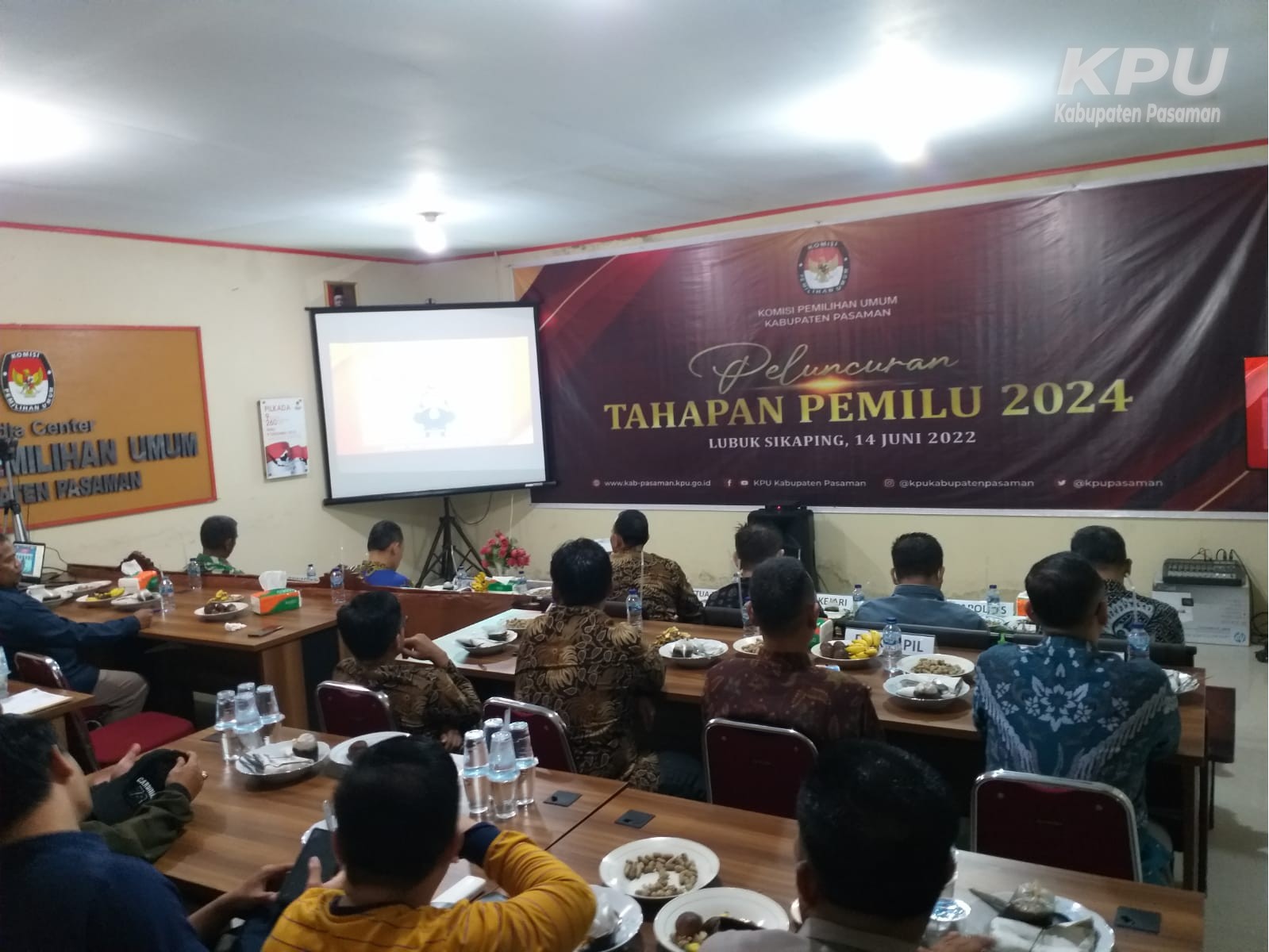 Peluncuran Tahapan Pemilu 2024, diikuti oleh seluruh jajaran KPU Provinsi dan KPU Kabupaten/Kota se-Indonesia dan stakeholder Pemilu melalui menonton bersama secara daring di Media Center KPU Kabupaten Pasaman.