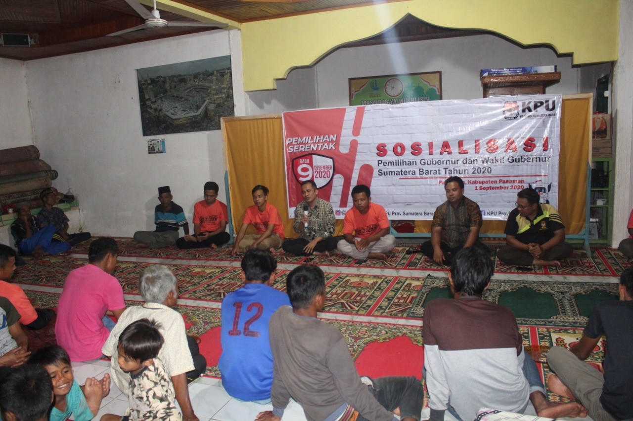 Tingginya tingkat partisipasi masyarakat dalam Pemilihan Kepala Daerah merupakan salah satu indikator suksesnya pelaksanaan Pilkada di suatu daerah. Salah satu cara untuk peningkatan partisipasi pemilih adalah dengan melakukan sosialisasi tahapan Pilkada. Oleh karena itu, KPU Provinsi Sumatera Barat dan KPU Kabupaten Pasaman melakukan Sosialisasi Pemilihan Gubernur dan Wakil Gubernur Sumatera Barat serta Bupati dan Wakil Bupati Pasaman di Jorong Pertemuan, Nagari Muaro Sungai Lolo, Kecamatan Mapat Tunggul Selatan yang merupakan salah satu daerah terjauh dan terisolir di Kabupaten Pasaman pada Selasa s.d Rabu (1 s.d 2 september 2020) yang dihadiri langsung oleh dua orang komisioner KPU Prov.Sumatera Barat Gebril Daulay Dan Nova Indra dan didampingi oleh Komisioner KPU Kabupaten Pasaman, Eria Candra, S.Sos berserta rombongan.