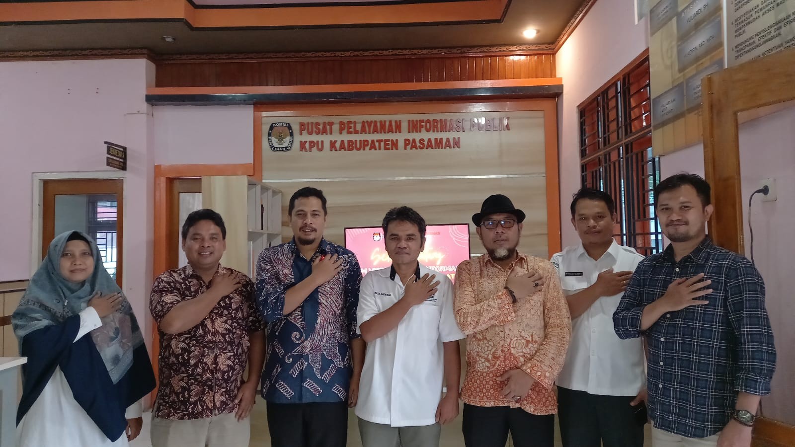 Tim Visitasi yang dipimpin Ketua KI Sumatera Barat Nofal Wiska, didampingi anggota KI Sumatera Barat Adrian Tuswandi dan Staf KI Sumbar Anggi Pratama. Visitasi KI Sumatera Barat ini diterima langsung oleh Ketua KPU Kabupaten Pasaman Rodi Andermi, Kordiv Sosdiklih Parmas dan SDM Eria Candra, Kasubag Teknis dan Hubmas Mira Jinas Husna dan Operator PPID Yolli Ardi.