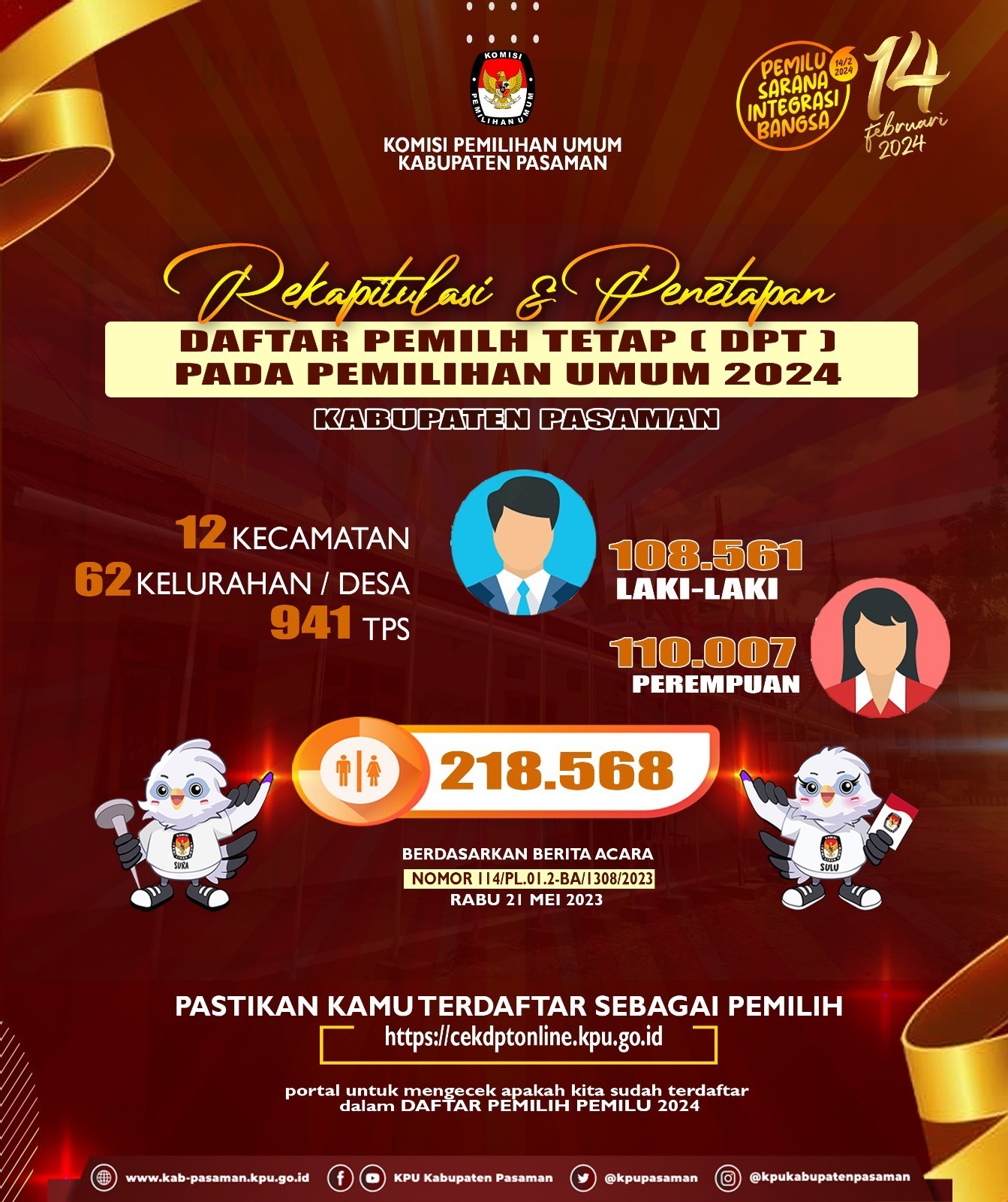 PENGUMUMAN DAFTAR PEMILIH TETAP (DPT) TINGKAT KABUPATEN PASAMAN UNTUK PEMILU TAHUN 2024