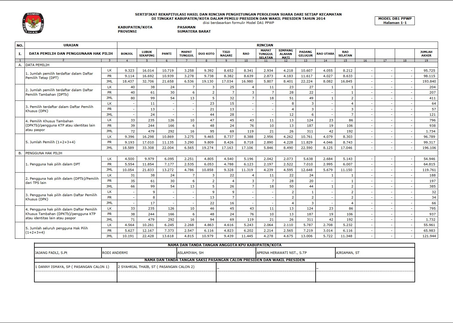 Hasil dari Rekapitulasi Hasil penghitungan Suara Pemilu Presiden dan Wakil Presiden 2014